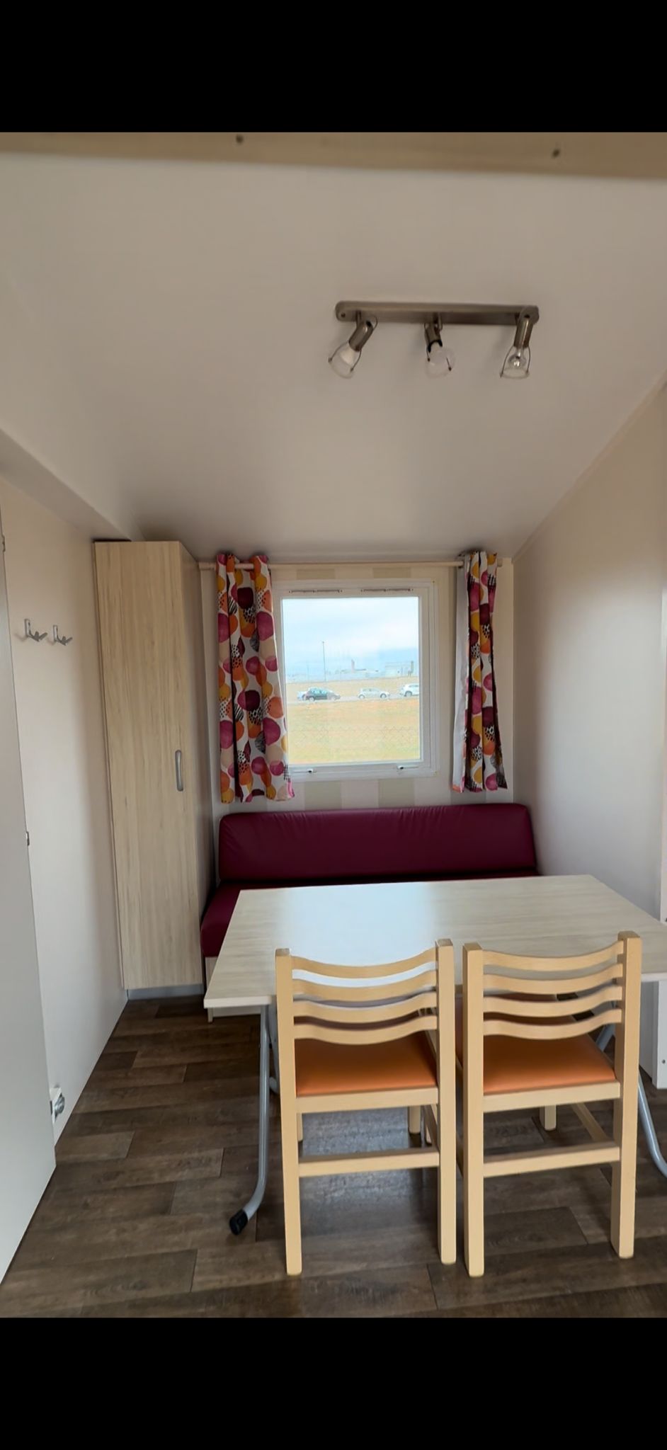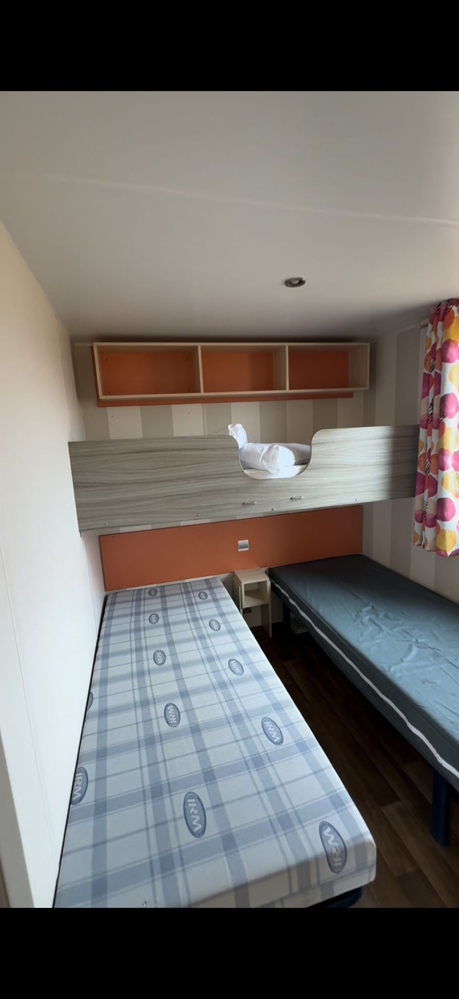 Cuenta con 2 habitaciones, una de matrimonio y una habitación individual con tres camas, perfecta para familias o para alojar a varias personas. El dormitorio principal dispone de acceso directo al lavabo, que incluye ducha y lavabo, aportando mayor privacidad y comodidad.