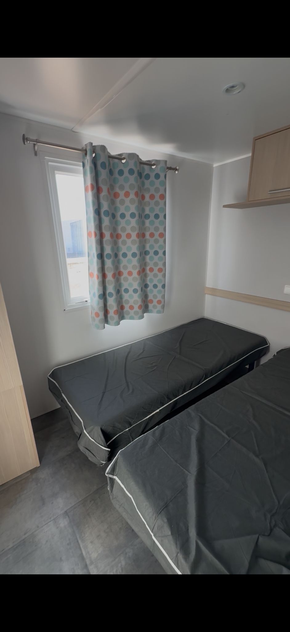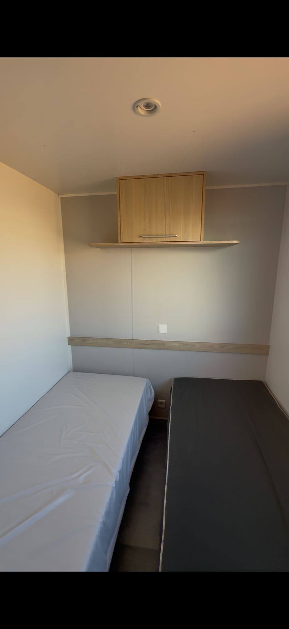 Dispone de 3 habitaciones, dos habitaciones individuales totalmente equipadas con dos camas cada una, y un dormitorio principal de matrimonio. La zona de baño está organizada de forma funcional, con WC independiente y un aseo separado con ducha y lavabo.