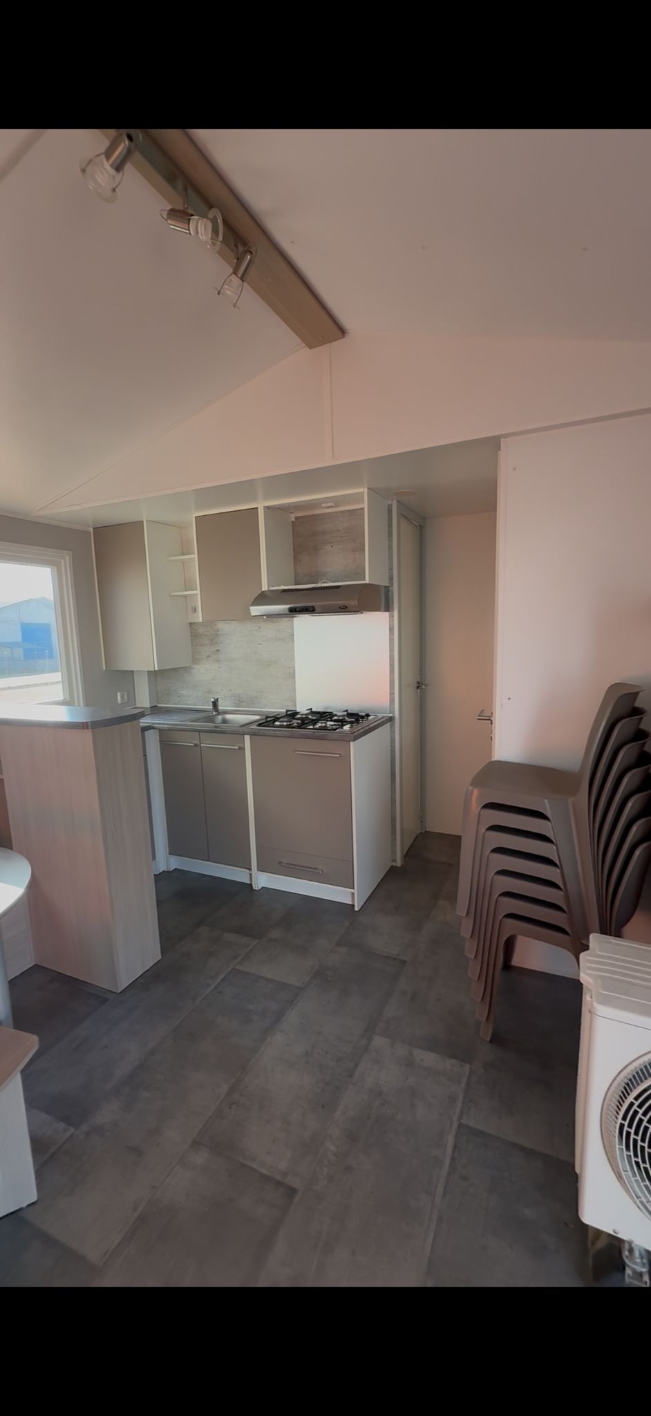 El espacio principal cuenta con un salón con cocina integrada, equipada con fogones de gas, campana extractora, fregadero y frigorífico, ofreciendo un entorno cómodo para el día a día.